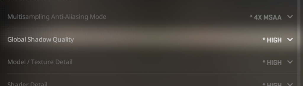 Leave Global Shadow Quality on very high. The reason for this is that shadows in Counter-Strike 2 are so good that having this setting on the highest level makes them as crisp as possible. Trust me, shadows give away player positions a lot in this game.